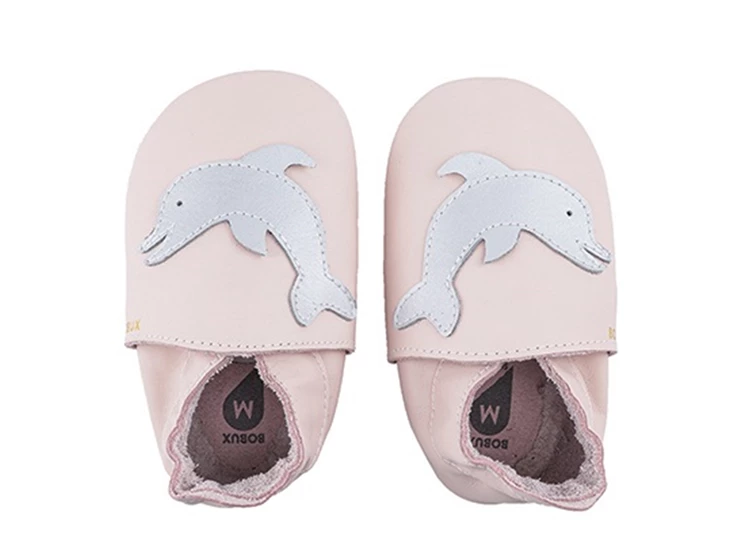 Vrolijke zachtroze Bobux slofjes met een leuk dolfijntje.